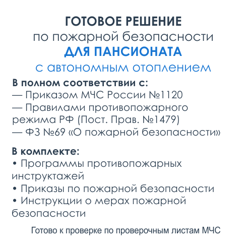 Руководителям, индивидуальным предпринимателям, ответственным за обеспечение пожарной безопасности на объекте: Дом интернат, пансионат с автономным отоплением.